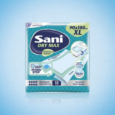 Sani DRY MAX XL bedpads feature the innovative 360° HYDRO-STOP technology, an advanced all-around green leakage barrier that effectively protects against leaks.